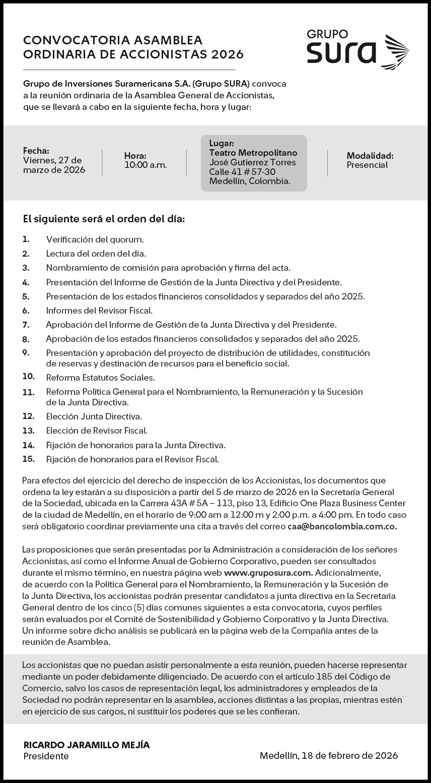 - Convocatoria sesión ordinaria de la Asamblea General de Accionistas 2023