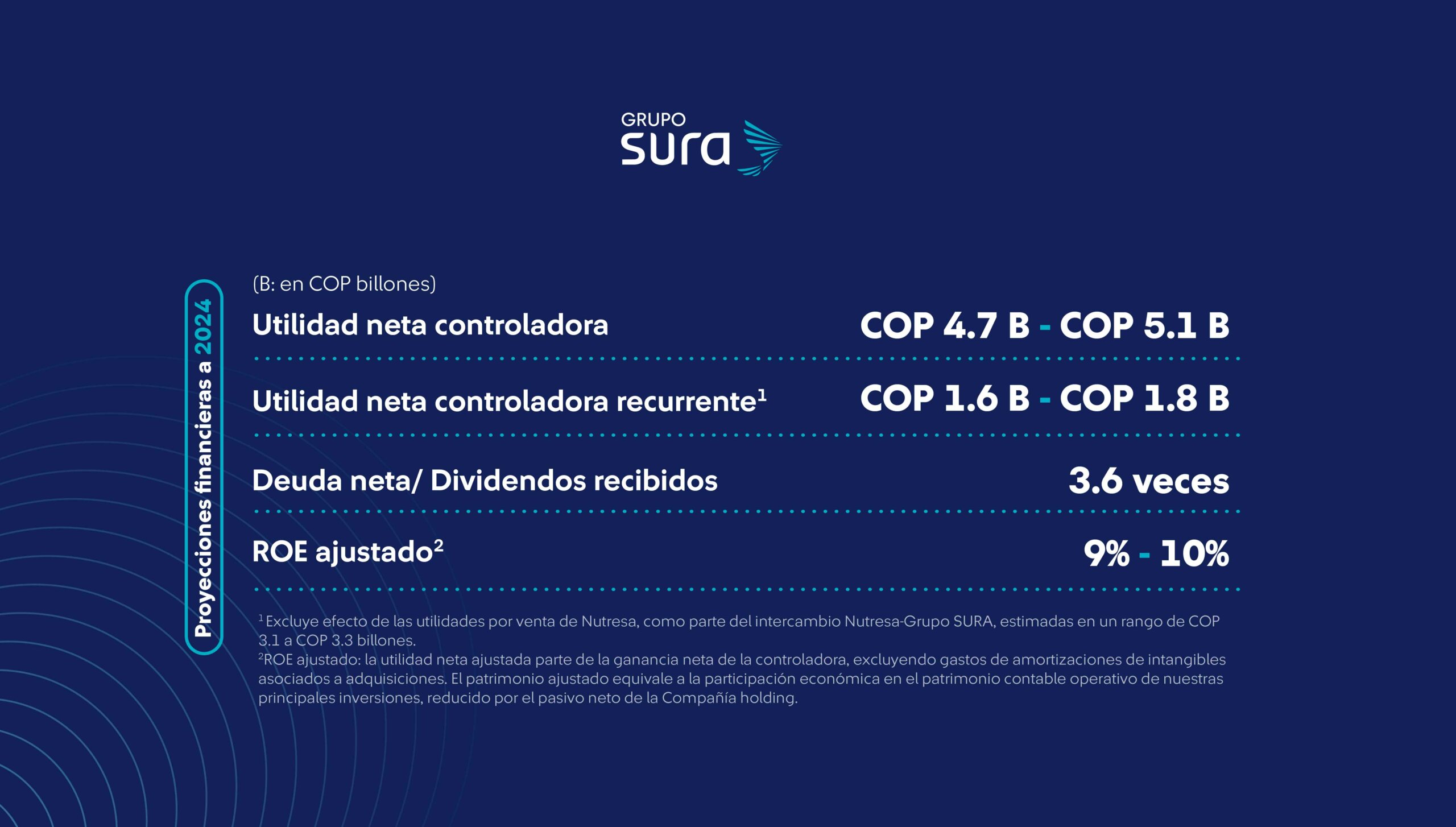⁴ Incluye la operación directa de sus subsidiarias en siete países de América Latina, así como vehículos de inversión en Estados Unidos y Luxemburgo. Hecho posterior al cierre de ejercicio: SURA Asset Management, a través de su filial Protección, anunció el 15 de feb de 2024 el acuerdo de venta de AFP Crecer, su operación en El Salvador.
